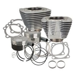 This kit converts 1200cc HD Sportster models to 1250cc displacement. No machining or rebalancing is required. Forged pistons have larger than stock valve pockets and accept up to 2.00″ valves. Kit contains forged flat topped 3 9/16″ bore pistons with coated piston skirts, S&S 3-9/16″ bore cylinders, MLS head gaskets, base gaskets, exhaust gaskets, assembly lube, and instructions.