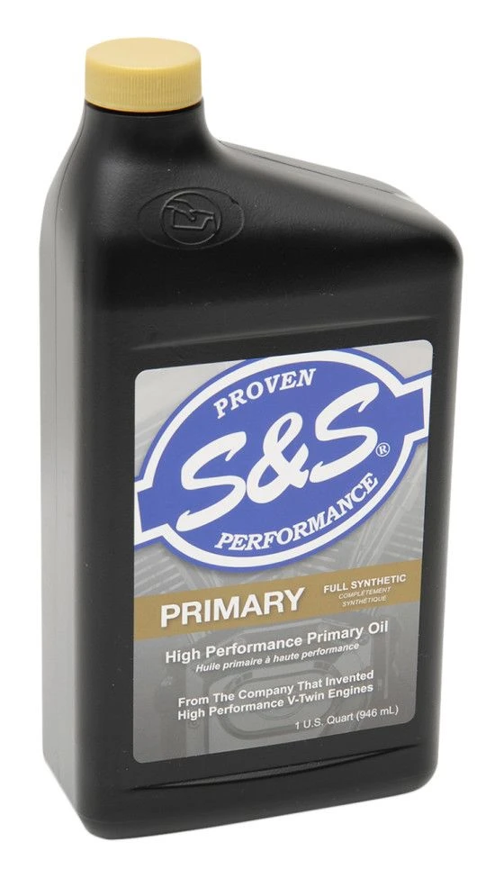 The S&S Cycle premium synthetic primary drive oil contain advanced additives that extend chain life. The full-synthetic formula resists shear and extends life in Big Twin primaries.